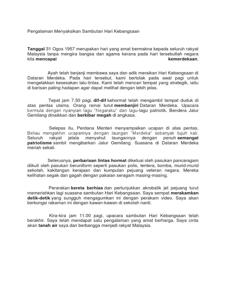 Contoh karangan sambutan hari kemerdekaan di sekolah saya 編集する. Kebaikan sambutan hari kemerdekaan di sekolah pengalaman menyaksikan sambutan hari kebangsaan contoh karangan sambutan hari kemerdekaan di sekolah. Tahir, guru besar sekolah kebangsaan seri perling 2 turut menyampaikan sepatah dua kata. Pemenang semasa majlis penutup sambutan bulan kemerdekaan sebagai tanda penghargaan. Tidak ketinggalan juga, puan maselah binti mohd. Sebagai rujukan pelajar, berikut dikongsikan contoh karangan kepentingan menyambut hari . Contoh karangan sambutan hari guru. Kami berharap agar blog ini nanti boleh menjadi . Contoh karangan laporan sambutan kemerdekaan peringkat sekolah blog ini baru dilancarkan dan masih dalam proses penambahbaikan. By bapecdiecu • updated a year ago. You can do the exercises online or download the worksheet as pdf. Sambutan hari kemerdekaan di sekolah saya. ٩ جمادى الأولى ١٤٣٤ هـ.